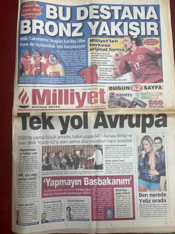 MİLLİYET GAZETESİ DOĞUM GÜNÜ HEDİYESİ - 29 HAZİRAN 2002 - TAM TAKIM 32 SAYFADIR -Şenol Güneş-Hakan Şükür-Rüştü Reçber-Hasan Şaş-Alpay Özalan-Tugay Kerimoğlu-Ümit Davala-Fatih Terim-Hakan Ünsal-Emre Belözoğlu-Bülent Korkmaz-Alpay Özalan-Kaan Dobra-Cengiz Malgir-Guus Hiddink-Rüsti Reçber-Miroslav Klose-Tayfun Korkut-Tarkan-Atilla Gökçe-Bilal Meşe-Ömer Üründül-Halil Özer-Fatih Terim-Mehmet Yılmaz-Rüştü Reçber-Nouma-David Beckham-Gilberto Silva-Orhan Yıldırım-Yusuf Kobal-Vedat Yenerer-Erhan Telli-Halil Özer-Bilgin Gökberk-Pınar Aktaş-Güneri Cıvaoğlu-Hasan Cemal-Mehmet Yılmaz-Yeliz Yeşilmen-Mesut Yılmaz-Tansu Çiller-İsmail Cem-Mustafa İstem-Bülent Ecevit-Rahşan Ecevit-Yılmaz Vural-Rüştü Reçber-Bekir Bozdağ-Baljc G.Saray’da-Türk Yıldızları-Sahaların Efendisiyiz-Bu Destana Bronz Yakışır-Tek Yol Avrupa-Ay Yıldız’ın Gurur Galası-Yüreğimizi Koyduk-Kore’de Üç Eksik-Trabzon’da Mutlu Son-Nouma Aklandı-Kesin Rota Silva adlı eser, Kitap > Süreli Yayınlar > Gazeteler > Türkiye > Genel > Günlük kategorisinde İkinci El olarak satıştadır.