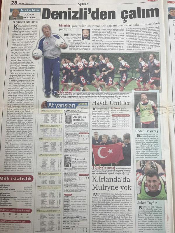 MİLLİYET GAZETESİ DOĞUM GÜNÜ HEDİYESİ - 3 EYLÜL 1999 - TAM TAKIM 30 SAYFADIR -Hüseyin Kıvrıkoğlu-Bülent Ecevit-Hikmet Çetin-İsmail Cem-Hüsamettin Özkan-Hasan Cemal-Güneri Cıvaoğlu-Rafet Aslan-Halil Özer-Vedat Danacı-Gökhan Türe-Erdoğan Şenay-Bilal Meşe-Doğan Koloğlu-Altuğ Atalay-Kartal Yiğit-Afşin Yakuboğlu-Sina Koloğlu-Erman Şener-Bilal Meşe-Haluk Kırcaali-Fatih Terim-Mustafa Doğan-Faruk Süren-Yorgo Batatoudis-Hikmet Çetin-Karolos Papoulias-Mustafa Denizli-Niall Quinn-Abdullah Doğan-Vedat Okyar-Rıdvan Dilmen-Murat Yakın-Fuat Yaman-Tayfur Havutçu-Kevin Keegan-Mustafa Er-Şenol Güneş-Fahri Karagözoğlu-Hikmet Karaman-Mustafa Reşit Akçay-Mustafa Er-Tarık Tüfekçioğlu-Spor yazarları-Ergün Attar-Murat Belge-Kaan Kural-Sadi Karagözoğlu-Mustafa Çakar-Mustafa Denizli’den çalım-Mustafa Doğan şoku-Sırtımdan vuruldum-Bu dostluk bitmesin-Sivil başkaldırı-Helsinki son durak-TV’nin önlenemeyen yükselişi-Türk Yunan barış köprüsü-Bu dostluk bitmesin-Denizli’den çalım-Haydi Ümitler-Hedef Beşiktaş, Ali Naci Karacan tarafından kaleme alınmıştır. MİLLİYET GAZETESİ DOĞUM GÜNÜ HEDİYESİ - 3 EYLÜL 1999 - TAM TAKIM 30 SAYFADIR -Hüseyin Kıvrıkoğlu-Bülent Ecevit-Hikmet Çetin-İsmail Cem-Hüsamettin Özkan-Hasan Cemal-Güneri Cıvaoğlu-Rafet Aslan-Halil Özer-Vedat Danacı-Gökhan Türe-Erdoğan Şenay-Bilal Meşe-Doğan Koloğlu-Altuğ Atalay-Kartal Yiğit-Afşin Yakuboğlu-Sina Koloğlu-Erman Şener-Bilal Meşe-Haluk Kırcaali-Fatih Terim-Mustafa Doğan-Faruk Süren-Yorgo Batatoudis-Hikmet Çetin-Karolos Papoulias-Mustafa Denizli-Niall Quinn-Abdullah Doğan-Vedat Okyar-Rıdvan Dilmen-Murat Yakın-Fuat Yaman-Tayfur Havutçu-Kevin Keegan-Mustafa Er-Şenol Güneş-Fahri Karagözoğlu-Hikmet Karaman-Mustafa Reşit Akçay-Mustafa Er-Tarık Tüfekçioğlu-Spor yazarları-Ergün Attar-Murat Belge-Kaan Kural-Sadi Karagözoğlu-Mustafa Çakar-Mustafa Denizli’den çalım-Mustafa Doğan şoku-Sırtımdan vuruldum-Bu dostluk bitmesin-Sivil başkaldırı-Helsinki son durak-TV’nin önlenemeyen yükselişi-Türk Yunan barış köprüsü-Bu dostluk bitmesin-Denizli’den çalım-Haydi Ümitler-Hedef Beşiktaş adlı eser Türkçe dilindedir.