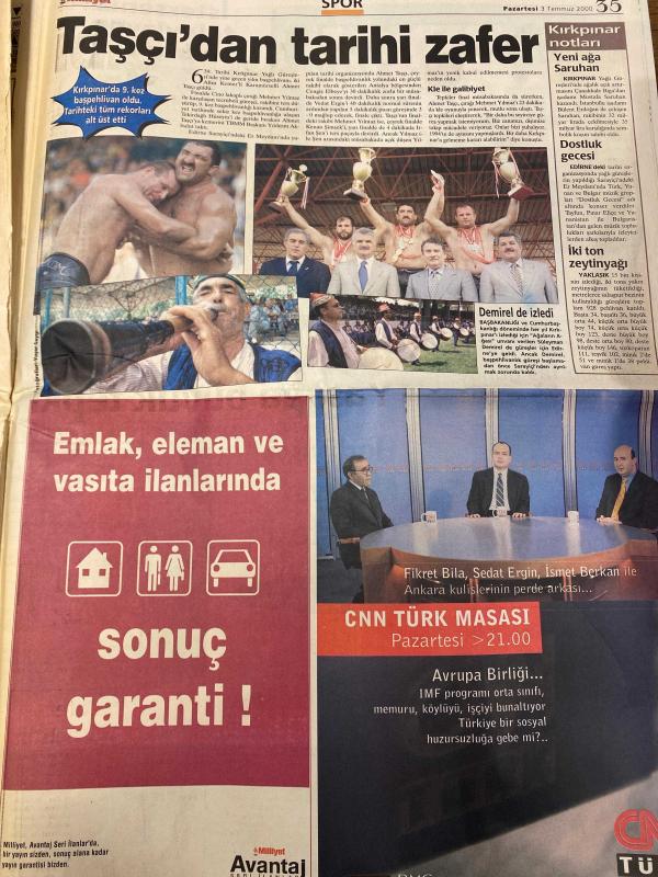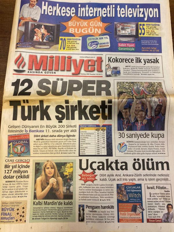 MİLLİYET GAZETESİ DOĞUM GÜNÜ HEDİYESİ - 3 TEMMUZ 2000 - TAM TAKIM 38 SAYFADIR -Recep Önal-Levent Özmen-Mehmet Şent-Mevlüt Kaçır-Ebru Sungur-Kartal Yiğit-Gökhan Türe-Galip Akın-Ahmet Turgut-Atilla Gökçe-Ömer Üründül-Ahmet Tulgar-Harun Görek-Her İstila Kalbi Mardin’de kaldı-Uçakta ölüm-12 süper Türk şirketi-Kokoreçe ilk yasak-30 saniyede kupa-Altın kral Fransa-Taşçı’dan tarihi zafer-Nouma turp gibi-Kortun onur günü-Zafer Steels’in-Bankaları birleştirip satabiliriz-Karabük’ün kalbi İstinye’de atıyor-Zeliha Üstünkaya-Asım Bezirci-Behçet Aysan-Metin Altıok-Nesimi Çimen-Asaf Koçak-Hasret Gültekin-Muhlis Akarsu-Murat Gündüz-Cemal Çalışan-Doğan Kaya-Serhat Kaya-Metin Altun-Ayşe Kırkaya-Özlem Şahin-Ezhelan Üstünkaya-Unutursak hatırlatırlar-Sivaslı öfkeli-Çimen mezarında anıldı-Benim içim rahat adlı eser, Kitap > Süreli Yayınlar > Gazeteler > Türkiye > Genel > Günlük kategorisinde İkinci El olarak satıştadır.
