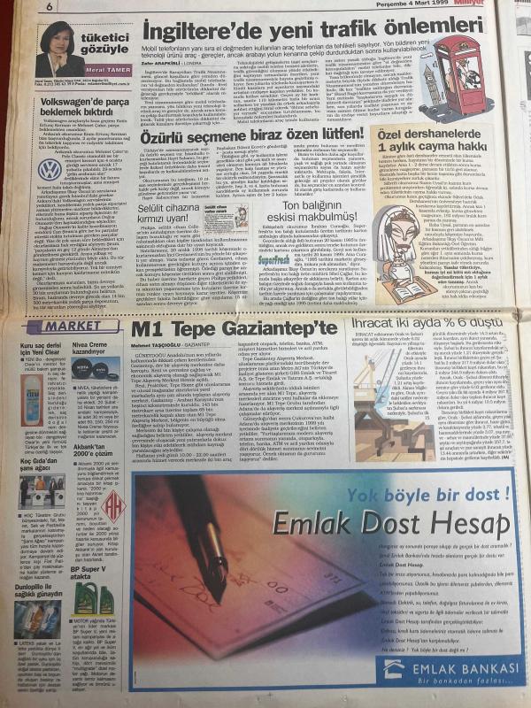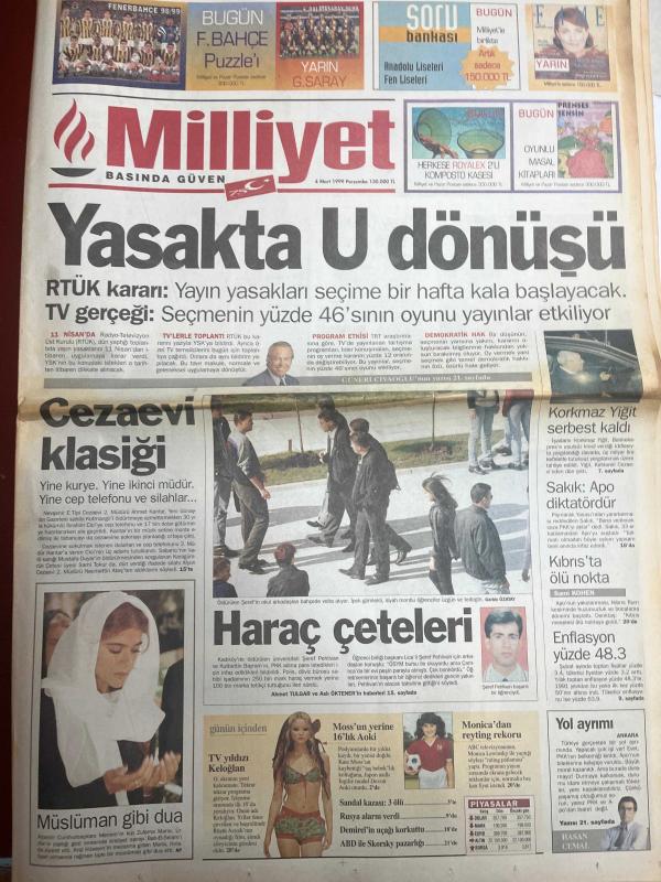 MİLLİYET GAZETESİ DOĞUM GÜNÜ HEDİYESİ - 4 MART 1999 - TAM TAKIM 34 SAYFADIR -Ahmet Tulgay-Akif Ökten-Günseli Özkürkçü-Samih Köhen-Hasan Cemal-Şeref Pehlivan-Yalçın Doğan-Taha Akyol-Fikret Bila-Doğan Heper-Turhan Selçuk-Halil Yasak-Namık Durukan-Hamit Yasak-Fuat Kars-Haluk Şahin-Omran Avcı-Özdemir İnce-Ahmet Çakar-Togay Bayatlı-Attila Gökçe-Erdoğan Şenay-Vedat Vatansever-Bilal Meşe-Mustafa Doğer-Hakan Şükür-Löw-Aziz Yıldırım-Balic-Amokachi-Ünal Karaman-Cemal Ersen-Moss-Aoki-Monica-Murat Bozlak-Ahmet Taner Kışlalı-Mehmet Ali Birand-Sırrı Sakık-Abdullah Öcalan-Serpil Kıvrak-Yavuz Donat-Haydar Ali Kırkıcı-Atilla Karaosmanoğlu-Yılmaz Erdoğan-Taha Akyol-Fuat Kars-Murat Belge-33 erin katili kim-Yasakta U dönüşü-Cezaevi klasiği-Haraç çeteleri-Lider döneriz-Yıldırım’dan anlamlı çağrı-Milli Takım’a gelirim-33 erin katili kim-Apo: Eylem Sakık’ın-Sakık: Talimat Öcalan’dan-Öcalan’ın sağlığı düzeldi-İddianame gibi listeler-Altın çerçevelik vekiller adlı eser, Kitap > Süreli Yayınlar > Gazeteler > Türkiye > Genel > Günlük kategorisinde İkinci El olarak satıştadır.