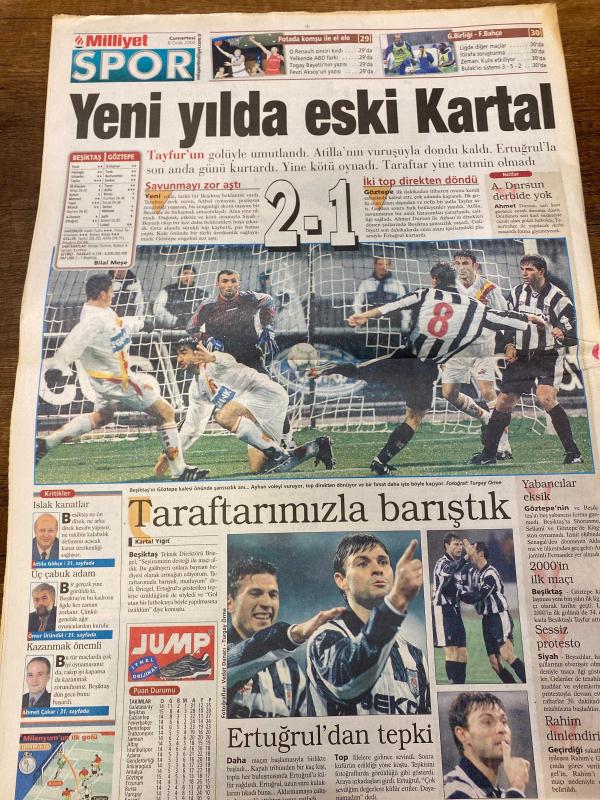 MİLLİYET GAZETESİ DOĞUM GÜNÜ HEDİYESİ - 8 OCAK 2000 - TAM TAKIM 32 SAYFADIR -Gülay Altay-Meral Tamer-Fikret Bila-Tunca Bengin-Hasan Cemal-Güngör Cıvaoğlu-Kadife Şahin-Senura Kardeşoğlu-Bilal Meşe-Atilla Gökçe-Ömer Üründül-Ahmet Çakar-Turay Ürme-Neslihan Cuyar-Turay İpek-Ufuk Türkoğlu-Ali Ayhaber-Sina Koloğlu-Tansel Semer-Meral Tamer Yedek emeklilik-MİT: İdama dikkat-Postada kalan aşk-Yeni yılda eski Kartal-Taraftarımızla barıştık-Bayram şekerleri-Kahraman anneye öpücük-Kuduz’a bir can daha-Nükleersiz bayramlar-Dünya Bankası’ndan TEAŞ’a zehir zemberek mektup-TEAŞ neden zorda SSK’ya ek olarak devlet teşvikli özel emeklilik getiriliyor-Bireysel emeklilik sistemi nasıl işleyecek-MİT’ten Apo’nun infazı hakkında dikkatli olunması yönünde rapor-Ecevit ve Bahçeli’den açıklamalar-Bir gencin posta kutusunda kalan aşk hikayesi-Tayfur’un golüyle Beşiktaş Göztepe’yi 2-1 yendi-Ertuğrul’dan tepki geldi-Bayram ekranlarında şovlar ve programlar yer aldı-Halil Kıvanç ve Bayram konukları ekranda yer al adlı eser, Kitap > Süreli Yayınlar > Gazeteler > Türkiye > Genel > Günlük kategorisinde İkinci El olarak satıştadır.