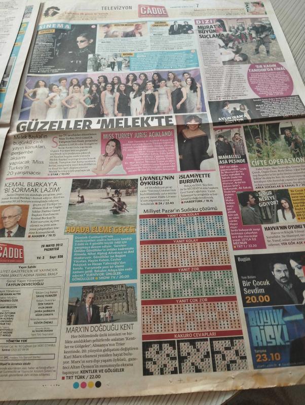 MİLLİYET GAZETESİ MİLLİYET CADDE GAZETESİ DOĞUM GÜNÜ GAZETESİ -28 Mayıs 2012- halk çocuğuyum-ilyas salman-beyonce sahnede- elleri kanlı blake-kendi sordu kendi yanıtladık- cudi genç-sibel can-mehmet Dereli- ali taran-ayşe Özyılmazel- nurgül yeşilçay-turkcell-olgun şimşek-şevval sam-grup yorum-fuat Saka- çağatay ulusoy-berrak Tüzünataç-Kadir İnanır- Pelin Çini- leman sam-mesut Yılmaz- murat boz-eliz sakuçoğlu-merve boluğur-selma ergeç-uğur ışılak-alev eyüpoğlu-çağdaş ertunak- galaların en kuğulu-hande ataizli-tuba ünsal-mirgün cabas-cem hakko-ronit gülcan-ayşe kulin-meltem cumbul- restoranlardan mama istiyorlar- Teoman o mektubu kendine yazdıksa çizgi hüzünlü ama umutlu gerçek bir öykü adlı eser, Kitap > Süreli Yayınlar > Gazeteler > Türkiye > Genel > Günlük kategorisinde İkinci El olarak satıştadır.