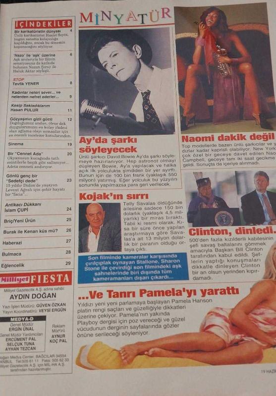 Kitap 1994 yılında yayınlanmıştır. 32 sayfadır. MİLLİYET GAZETESİ-MİLLİYET FİESTA PAZAR DERGİSİ-FİESTA-DERGİ-PAZAR-EK-19 HAZİRAN-1994-SAYI:48-KAPAK-FOTOĞRAF-RÖPORTAJ-SOSYETE-HAZIRCEVAP-SABUN KÖPÜĞÜ-BİLİM-SPOR DÜNYASI-SİNEMA-DÜNYA-HABERLER-ARAŞTIRMA-PAZAR KEYFİ-SÜPER-ŞANS-NAOMİ CAMPBELL-DEWİD BOWİE-BİLL CLİNTON-PAMELA ANDERSON-KARİKATÜRİST-NAZAN ŞORAY-NAZO-AŞK-ÜZERİNE-ROCK^'N ROLL-KADINLAR-GÖZYAŞI-GİZLİ-GÜÇ-TANSU ÇİLLER-ROMANTİK-WESTERN-CENNET-TOUESROK-OKYANUS-SEDEFÇİ DEDE-DİDİM-BURAK KUT-KENAN DOĞULU-SİBEL EGEMEN-BURHAN ŞEŞEN-NİL BENTÜRK-AJDA PEKKAN-HALİT KIVANÇ-ÇİNGENE-KİBARİYE-GÜLLÜ-GÜLBEN ERGEN-AJLAN BÜYÜKBURÇ-BEGÜM ÖZBEK-TOLGA HAN-SEVİM EGESOY-TARKAN adlı eser Türkçe dilindedir.