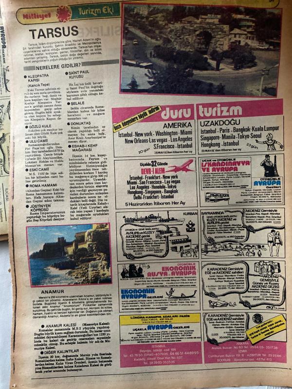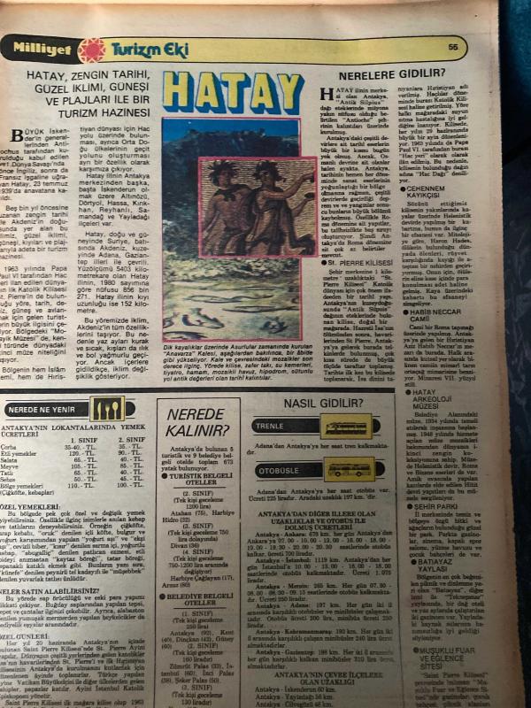 MİLLİYET GAZETESİ TURİZM EKİ (TURKISH NEWSPAPER) - 11 MAYIS 1981 -Büyük İskender-Habib Neccar-Antakya-Antioch-Adana-Tarihte Adana-Ülkemizin Sanayi Merkezlerinden Biri Aynı Zamanda Pamuk Ambarı Adana-Nerelere Gidilir-Kozan Kalesi-Mağarsos-Karatepe-Misis-Yılan Kale-Akçamescit-Ulu Cami-Yağ Camii-Hasan Ağa Camii-Anavarza-Adını Yörenin En Önemli Gölüne Veren İlçe Eğirdir-Nasıl Gidilir-Nerede Kalınır-Nerede Ne Yenir-Aklınızda Bulunsun-Neler Satın Alınabilir-İskenderun-Büyük İskender’in M.Ö. 302 Yılında Kurduğu Kent-Salankale-Han ve Hamamlar-Köprü Satıosu-Kaletini-Bakras Satıosu-Sariseki Satıosu-Arsuz-Uluçınar-Sotunlu Liman-Cebeli Akra-Trayun Su Kemeri-Nerede Ne Yenir-Nasıl Gidilir-Nerede Kalınır-İskenderun Körfezi Karidesi ile Ünlü-İçel-Mersin-Eski Kilikya-Yumuşak İklimi Daire Berrak Gökyüzü ile Yerli ve Yabancı Turistlerin En Çok Geldiği Yurt Köşelerinden Biri-Nerede Kalınır-Nerede Ne Yenir-Özel Yemekleri-Neler Satın Alınabilir-Aklınızda Bulunsun-Nasıl Gidilir-Silifke-Kız Kulesi-Narlıkuyu M adlı eser, Kitap > Süreli Yayınlar > Gazeteler > Türkiye > Genel > Günlük kategorisinde İkinci El olarak satıştadır.