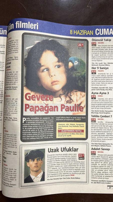 MİLLİYET OSCAR MAGAZİN TV DERGİSİ - SAYI: 40 - 2/8 HAZİRAN 2001 -TÜRKAN ŞORAY - KADİR İNANIR - HANDE ATAİZİ - DENİZ AKKAYA - DUYGU DİKMENOĞLU - HÜLYA KOÇYİĞİT - SEVİM GÖZAY - YILMAZ ERDOĞAN - MUSTAFA ERDOĞAN - AYŞE TOLGA - MUAZZEZ ERSOY - ALİ İHSAN KISAÇ - EYLEM ŞENKAL - YELİZ TOZAN - PERİ KUTMAN - CİHAN ÜNAL - HALİT REFİĞ - MESUT ENGİN - JALAL MERHI - LOREN AVEDON - FERİDE ÇIKIT - SERDAR BENLİ - NURDAN AKINER - SERKAN DUYGU - ORHAN GÜNDOĞ - BİRSEN ALTUNTAŞ - ALİ EYÜBOĞLU - MEHMET Y. YILMAZ - AYDIN DOĞAN- KADİR TÜRKAN AŞKI - BU DENİZ BİTMEZ - LOLITA'NIN ZOR SINAVI - YASAĞI DELDİ - HEDEFİ BÜYÜK - KAZAN KAFALI YILMAZ - İYİ KIZ'DAN BIKTIM - YENİ ŞARKILAR - YARDIM MELEĞİ - ÇOCUK REYONUNDAN GİYİNİYOR - İKİ KADIN ARASINDA - EVLAT - BAŞLIK PARASI - ÖZGÜRLÜK YOLU - TÜRKAN ŞORAY - KADİR İNANIR - HANDE ATAİZİ - DENİZ AKKAYA - DUYGU DİKMENOĞLU - HÜLYA KOÇYİĞİT - SEVİM GÖZAY - YILMAZ ERDOĞAN - MUSTAFA ERDOĞAN - AYŞE TOLGA - MUAZZEZ ERSOY - ALİ İHSAN KISAÇ - EYLEM ŞENKAL - YELİZ TOZAN - - 26 SAYFA, AYDIN DOĞAN tarafından kaleme alınmıştır. Kitap DERYA SAZAK tarafından [DOĞAN MEDYA CENTER] yayınlanmıştır. 26 sayfadır. MİLLİYET OSCAR MAGAZİN TV DERGİSİ - SAYI: 40 - 2/8 HAZİRAN 2001 -TÜRKAN ŞORAY - KADİR İNANIR - HANDE ATAİZİ - DENİZ AKKAYA - DUYGU DİKMENOĞLU - HÜLYA KOÇYİĞİT - SEVİM GÖZAY - YILMAZ ERDOĞAN - MUSTAFA ERDOĞAN - AYŞE TOLGA - MUAZZEZ ERSOY - ALİ İHSAN KISAÇ - EYLEM ŞENKAL - YELİZ TOZAN - PERİ KUTMAN - CİHAN ÜNAL - HALİT REFİĞ - MESUT ENGİN - JALAL MERHI - LOREN AVEDON - FERİDE ÇIKIT - SERDAR BENLİ - NURDAN AKINER - SERKAN DUYGU - ORHAN GÜNDOĞ - BİRSEN ALTUNTAŞ - ALİ EYÜBOĞLU - MEHMET Y. YILMAZ - AYDIN DOĞAN- KADİR TÜRKAN AŞKI - BU DENİZ BİTMEZ - LOLITA'NIN ZOR SINAVI - YASAĞI DELDİ - HEDEFİ BÜYÜK - KAZAN KAFALI YILMAZ - İYİ KIZ'DAN BIKTIM - YENİ ŞARKILAR - YARDIM MELEĞİ - ÇOCUK REYONUNDAN GİYİNİYOR - İKİ KADIN ARASINDA - EVLAT - BAŞLIK PARASI - ÖZGÜRLÜK YOLU - TÜRKAN ŞORAY - KADİR İNANIR - HANDE ATAİZİ - DENİZ AKKAYA - DUYGU DİKMENOĞLU - HÜLYA KOÇYİĞİT - SEVİM GÖZAY - YILMAZ ERDOĞAN - MUSTAFA ERDOĞAN - AYŞE TOLGA - MUAZZEZ ERSOY - ALİ İHSAN KISAÇ - EYLEM ŞENKAL - YELİZ TOZAN - - 26 SAYFA adlı eser Türkçe dilindedir.