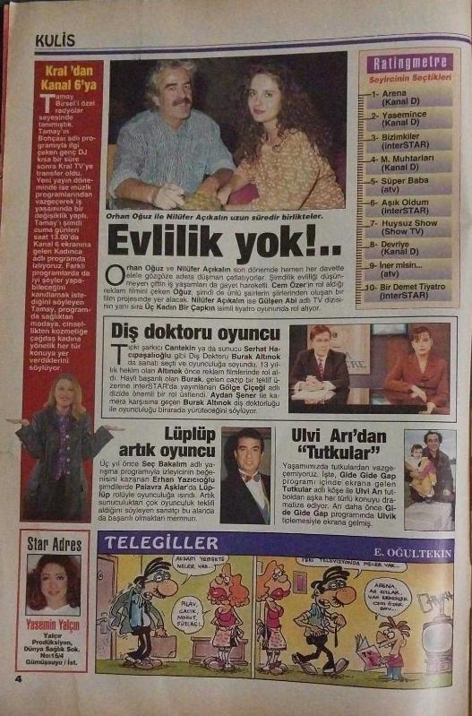 MİLLİYET OSCAR TV MAGAZİN DERGİSİ-MİLLİYET-OSCAR-9 ARALIK-15 ARALIK-1995-YIL:4-SAYI:166-KAPAK-FOTOĞRAF-RÖPORTAJ-EN BÜYÜK EN TARAFSIZ TELEVİZYON DERGİSİ-ÖZGE ÖZSAĞMAN-ADIM ADIM YÜKSELİYOR-TIPATIPLAR-POLITIKANIN SEVİMLİ YÜZÜ-ÖZLEM SAVAŞ-POLITIKAYA ÇOK UZAK-AÇELYA AKKOYUNLU-SUNUCULUĞA SOYUNDU-EVLİLİK YOK-NİLFER AÇIKLAIN-ORHAN OĞUZ-MÜKREMIN'DEN YENİ BİR OYUN-YILMAZ ERDOĞAN-LÜPLÜP ARTIK OYUNCU-ERHAN YAZICIOĞLU-EZGÜ'DEN BULGUR KÖFTESİ-SERAP EZGÜ-DREW BARRYMOORE-KAPALI YOLLAR-ŞOFÖR NEBAHAT-FATMA GİRİK-BABA KOLÇAK'IN SAÇLARI KISALDI-HARUN KOLÇAK*EŞREF KOLÇAK-EKRANIN YENI IKILISI-AHMET UĞURLU-ZUHAL GENCER-İYİ UYUMANIN PÜF NOKTALARI adlı eser, Kitap > Süreli Yayınlar > Dergiler > Magazin, Moda kategorisinde İkinci El olarak satıştadır.