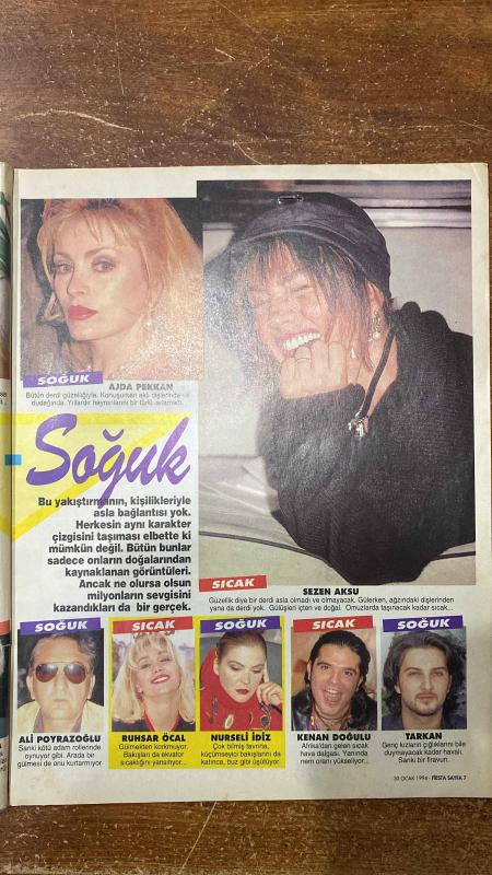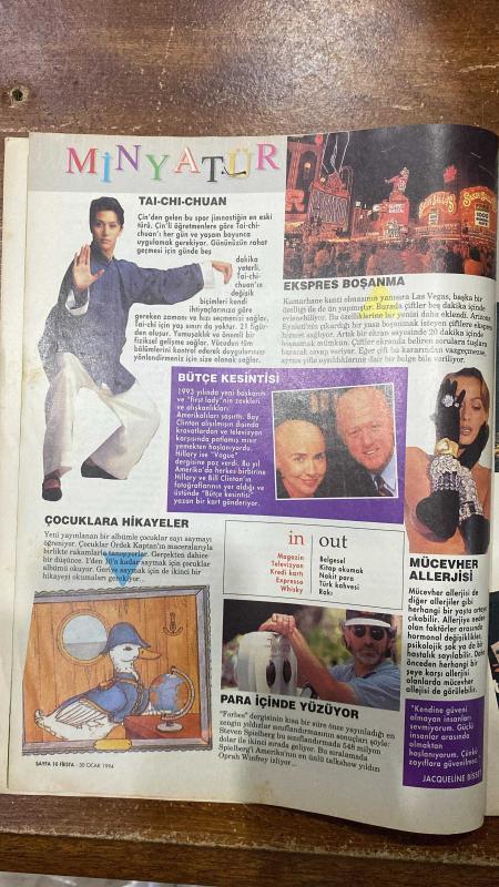 MİLLİYET PAZAR DERGİSİ FIFSTA DERGİSİ -SAYI : 28 - 30 OCAK 1994 - TEVFİK YENER AJDA PEKKAN SEZEN AKSU ALİ POYRAZOĞLU RUHSAR ÖCAL NURSELİ İDİZ KENAN DOĞULU TARKAN COŞKUN SABAH HASAN PULUR İSLAM ÇUPİ ROBIN WILLIAMS KİMLER SICAK, KİMLER SOĞUK – KARADENİZ’İN İNCİSİ TRABZON – ORMAN ÇOCUĞU – COŞKUN SABAH – BEYAZ ADAMIN RUHU YOKTUR – HOLLYWOOD’DA ROBIN WILLIAMS - MjNYATUR TAI-CHI-CHUAN - TALAT YILMAZ SEMRA ÖZAL TURGUT ÖZAL HÜSNÜ DOĞAN MUSTAFA TAŞAR NECDET TARIK PİŞKİN DALAN KORKUT ÖZAL EYMEN TOPBAŞ UĞUR MUMCU CAROLINE JACK NICHOLSON LORRAINE DUCHESNAY PAUL DUCHESNAY ISABELLE DUCHESNAY JEAN GABIN SIMONE SIGNORET BRIGITTE BARDOT STALLONE BILL CLINTON HILLARY CLINTON JACQUELINE BISSET KESİP SAKLADIKLARIM – SEMRA ÖZAL VE ANAP KAVGALARI – UĞUR MUMCU’NUN “CAHİLİYE DEVRİ” YAZISI – TALAT YILMAZ BEYOĞLU ADAYI – CAROLINE’E SÜRPRİZ – JACK NICHOLSON VE KIZI – KASLI VÜCUTLAR GÖZDE – BUZUN KRAL VE KRALİÇESİ – 50’Lİ YILLARIN SİNEMA AFİŞLERİ – RAMBO SENDROMU – TAI-CHI-CHUAN – BILL & HILLARY CLIN 32 SAYFA, SELAHATTİN DUMAN tarafından kaleme alınmıştır. Eser HANDE ÖZCAN editörlüğünde hazırlanmıştır. Kitap DOĞAN OFSET tarafından [İSTANBUL ] yayınlanmıştır. 32 sayfadır. MİLLİYET PAZAR DERGİSİ FIFSTA DERGİSİ -SAYI : 28 - 30 OCAK 1994 - TEVFİK YENER AJDA PEKKAN SEZEN AKSU ALİ POYRAZOĞLU RUHSAR ÖCAL NURSELİ İDİZ KENAN DOĞULU TARKAN COŞKUN SABAH HASAN PULUR İSLAM ÇUPİ ROBIN WILLIAMS KİMLER SICAK, KİMLER SOĞUK – KARADENİZ’İN İNCİSİ TRABZON – ORMAN ÇOCUĞU – COŞKUN SABAH – BEYAZ ADAMIN RUHU YOKTUR – HOLLYWOOD’DA ROBIN WILLIAMS - MjNYATUR TAI-CHI-CHUAN - TALAT YILMAZ SEMRA ÖZAL TURGUT ÖZAL HÜSNÜ DOĞAN MUSTAFA TAŞAR NECDET TARIK PİŞKİN DALAN KORKUT ÖZAL EYMEN TOPBAŞ UĞUR MUMCU CAROLINE JACK NICHOLSON LORRAINE DUCHESNAY PAUL DUCHESNAY ISABELLE DUCHESNAY JEAN GABIN SIMONE SIGNORET BRIGITTE BARDOT STALLONE BILL CLINTON HILLARY CLINTON JACQUELINE BISSET KESİP SAKLADIKLARIM – SEMRA ÖZAL VE ANAP KAVGALARI – UĞUR MUMCU’NUN “CAHİLİYE DEVRİ” YAZISI – TALAT YILMAZ BEYOĞLU ADAYI – CAROLINE’E SÜRPRİZ – JACK NICHOLSON VE KIZI – KASLI VÜCUTLAR GÖZDE – BUZUN KRAL VE KRALİÇESİ – 50’Lİ YILLARIN SİNEMA AFİŞLERİ – RAMBO SENDROMU – TAI-CHI-CHUAN – BILL & HILLARY CLIN 32 SAYFA adlı eser Türkçe dilindedir.