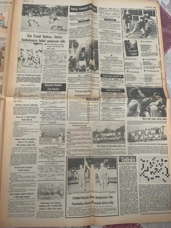 MİLLİYET SPOR GAZETESİ - 16 KASIM 1981-ata kupası Köyiçi yelken yarışları-Galatasaray--Adanaspor-Ajax-erkekler basketbolda ligi-Beşiktaşlı battal-voleybolda Galatasaray eczacıbaşı-Cihat erbil-İsmail erçin-Ata Özbay-Metin yılmaztürk-Bülent Ergun-Metin kınay-Bahattin Ulussan-Garbis parsehyan Yusuf uğurtamer -ikinci Türkiye Ligi grubunda durum-Türkiye voleybol Ligi maçı-Türk ticaret bankası Türkiye bankalararası futbol şampiyonu-büyükler hentbol Ligi maçları-Türkiye gençler Ligi -tankut antikacıoğlu-İhsan Topaloğlu-Fuat Ercan-Beşiktaş-Dünya boks kupası-Türkiye gençler Ligi-cemalettin Şen-İlhan Söyler-Kadir akat-Tongsir-İlker Ateş-Beşiktaş amatör takımı-Fenerbahçe-güreş hakemleri-Brezilyalı yıldız-aydan Siyavuş adlı eser, Kitap > Süreli Yayınlar > Gazeteler > Türkiye > Genel > Günlük kategorisinde İkinci El olarak satıştadır.