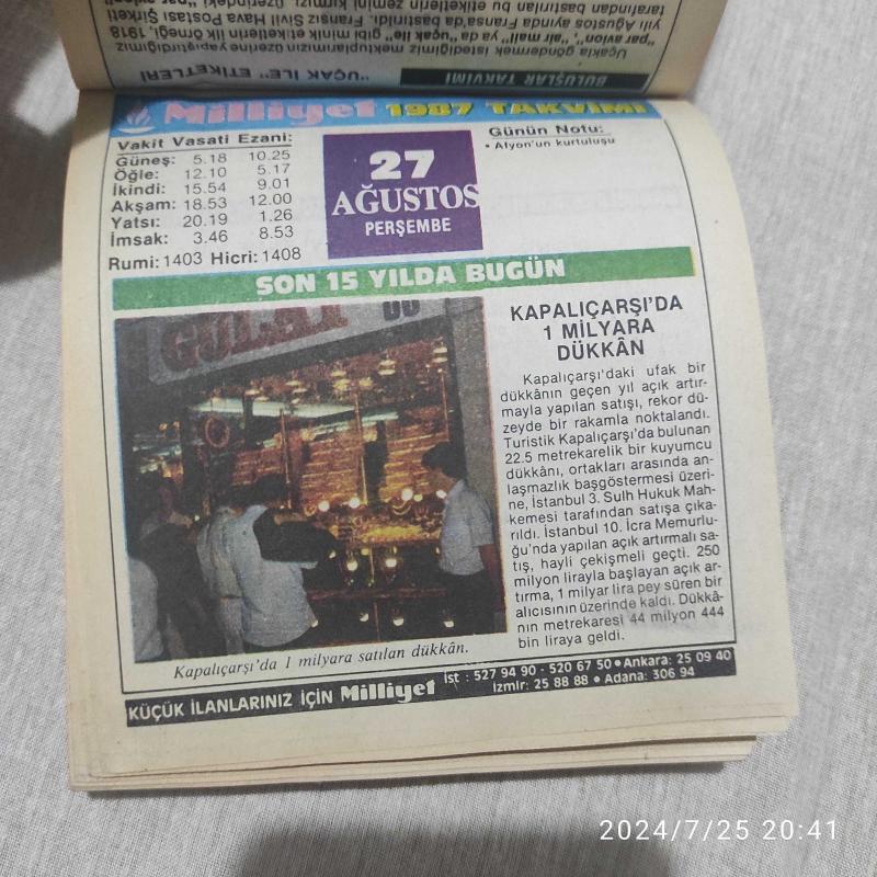 MİLLİYET TAKVİMİ 27 AĞUSTOS 1987 - DOĞUM GÜNÜ HEDİYESİ HEDİYELİK TAKVİM YAPRAĞI, en son 1 yıl önce güncellenmiştir.