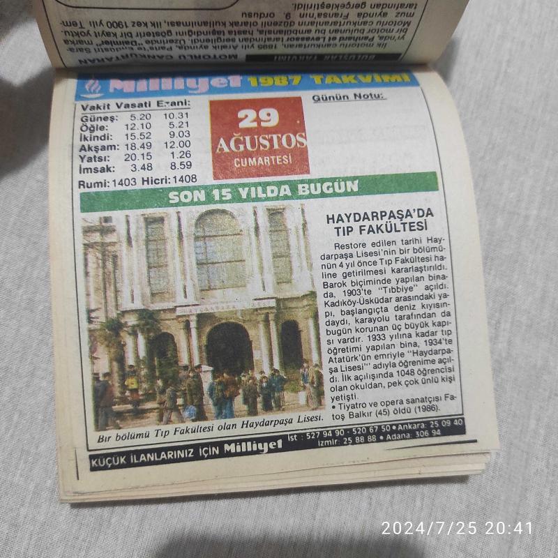 MİLLİYET TAKVİMİ 29 AĞUSTOS 1987 - DOĞUM GÜNÜ HEDİYESİ HEDİYELİK TAKVİM YAPRAĞI, en son 1 yıl önce güncellenmiştir.