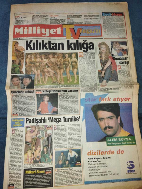 MİLLİYET TV MAGAZİN GAZETESİ DOĞUM GÜNÜ GAZETESI-16 Şubat 1994-Mahsun Kırmızıgül-Ali Erdil-Tansu-Candan Erçetin-Binnur Şafak-Nigar Uluerer-George Winter-Rüstem Batum-Alem Buysa-Binbir Surat-Lilla Arıcan-Sina Koloğlu-Kılıktan kılığa-Romanlar savaşı-Cücelerle sohbet-Kolejli Tansu’nun yaşamı-Padişahlı Mega Turnike-Star fark atıyor-dizilerde de-Hayalle gerçek-Yasak aşk-Aşk savaş ihanet-Uyuşturucu kurbanları-Burhan Özfatura adlı eser Türkçe dilindedir. Eserin içeriğinde Türkçe dilinde bölümlere de yer verilmektedir.