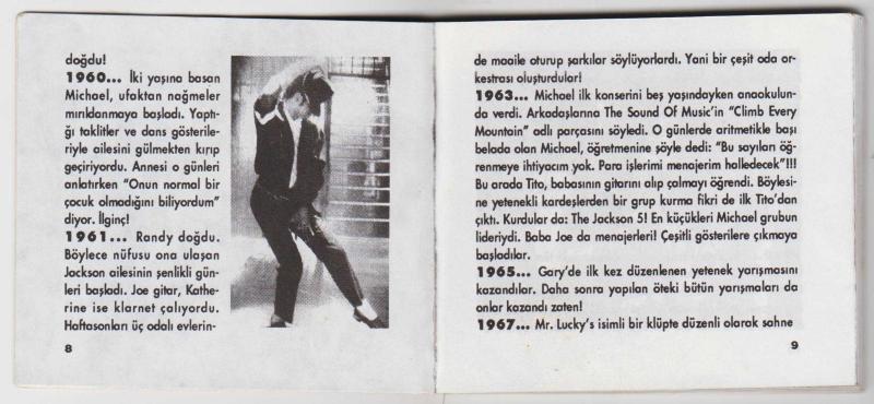 Kitap 1993 yılında yayınlanmıştır. Satışta olan kitap, yayınevinin 1. baskısıdır. 95 sayfadır. MİLLİYET WALK-MAN DERGİSİ MİCHAEL JACKSON KİTAPÇIĞI 8,5x9,5 cm. adlı eser Türkçe dilindedir.
