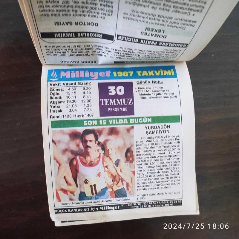 MİLLYET TAKVİMİ 30 TEMMUZ 1987 - DOĞUM GÜNÜ HEDİYESİ HEDİYELİK TAKVİM YAPRAĞI, en son 1 yıl önce güncellenmiştir.