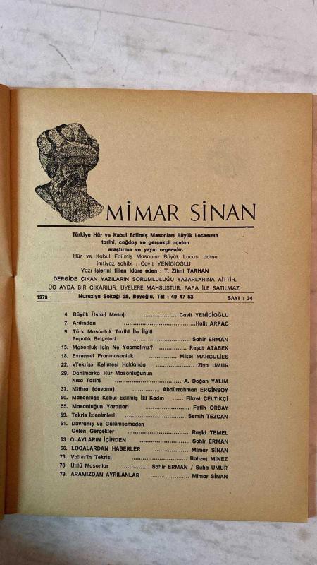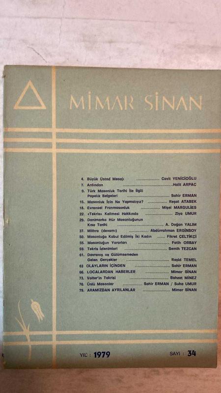 MİMAR SİNAN DERGİSİ - 1979 SAYI: 34 CAVİT YENİCİOĞLU - HALİT ARPAC - SAHİR ERMAN - REŞAT ATABEK - MİŞEL MARGULİES - ZİYA UMUR - A. DOĞAN YALIM - ABDÜRRAHMAN ERGİNSOY - FİKRET ÇELTİKÇİ - FATİH ORBAY - SEMİH TEZCAN - RAŞİD TEMEL - BAHZAT MİNEZ - SUHA UMUR - T. ZİHNİ TARHAN BÜYÜK ÜSTAD MESAJI - ARDINDAN - TÜRK MASONLUK TARİHİ İLE İLGİLİ PAPALIK BELGELERİ - MASONLUK İÇİN NE YAPMALIYIZ? - EVRENSEL FRANMASONLUK - «TEKRİS» KELİMESİ HAKKINDA - DANİMARKA HÜR MASONLUĞUNUN KISA TARİHİ - MİTHRA (DEVAMI) - MASONLUĞA KABUL EDİLMİŞ İKİ KADIN - MASONLUĞUN YARARLARI - TEKRİS İZLENİMLERİ - DAVRANIŞ VE GÜLÜMSEMEDEN GELEN GERÇEKLER - OLAYLARIN İÇİNDEN - LOCALARDAN HABERLER - VOLTER’İN TEKRİSİ - ÜNLÜ MASONLAR - ARAMIZDAN AYRILANLAR - TAM TAKIM EKSİKSİZ 80 SAYFA adlı eser, Kitap > Süreli Yayınlar > Dergiler > Siyaset kategorisinde İkinci El olarak satıştadır.