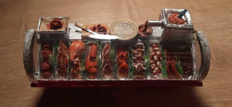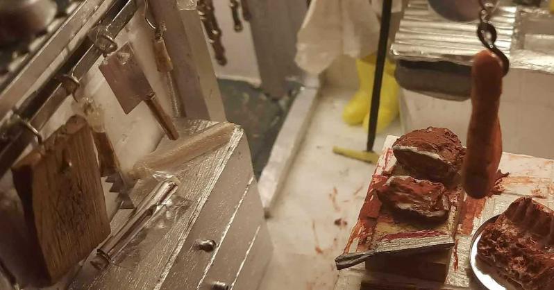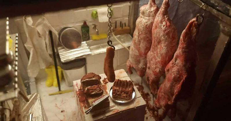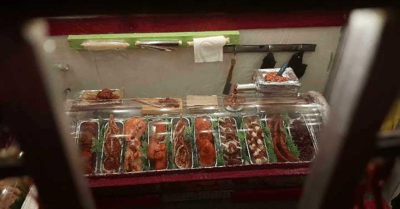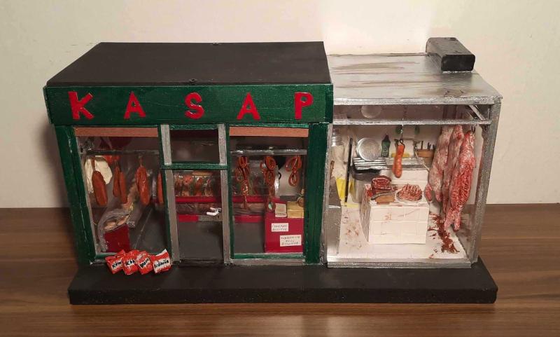Minyatür, tamamen el yapımı, ışıklandırmalı kasap Yükseklik : 22cm En : 42cm Derinlik :18cm