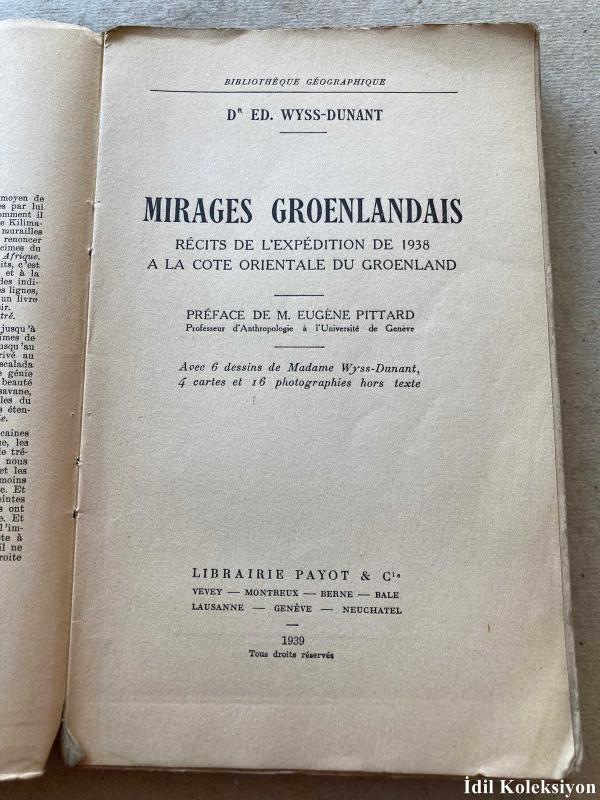 MİRAGES GROENLANDAİS : RECİTS DE L'EXPEDİTİON DE 1938 A LA COTE ORİENTALE DU GROENLAND - M. EUGENE PİTTARD - LİBRAİRİE PAYOT & CİE - DR. ED. WYSS DUNANT - FRANSIZCA KİTAP (Mirages GROENLANDAİS : Grönland'ın Doğu Sahiline Yapılan 1938 Keşif Gezisinin Hikayeleri)