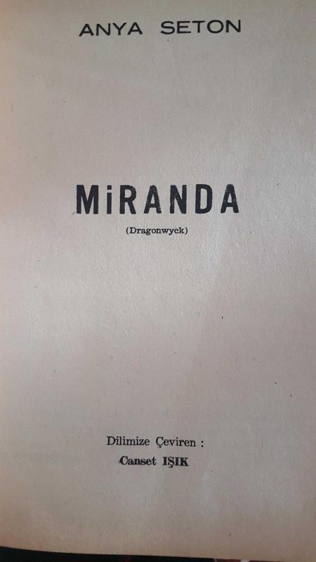 MİRANDA (CİLTLİ), ANYA SETON tarafından kaleme alınmıştır. Kitap 1973 yılında ALTIN.K tarafından [İSTANBUL] yayınlanmıştır. Bu baskının çevirisi CANSET IŞIK tarafından yapılmıştır. 384 sayfadır. MİRANDA (CİLTLİ) adlı eser Türkçe dilindedir.