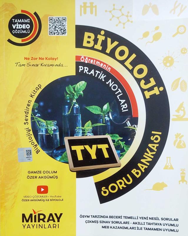 MİRAY YAYINLARI, TYT BİYOLOJİ SORU BANKASI, GAMZE ÇOLUM - ÖZER AKGÜMÜŞ tarafından kaleme alınmıştır. Kitap 2024 yılında MİRAY YAYINLARI tarafından [ANKARA] yayınlanmıştır. Satışta olan kitap, yayınevinin 1. baskısıdır. MİRAY YAYINLARI, TYT BİYOLOJİ SORU BANKASI adlı eser Türkçe dilindedir.