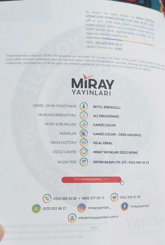 LÜTFEN AÇIKLAMAYI OKUYUN... MİRAY YAYINLARI, TYT BİYOLOJİ SORU BANKASI 2024 - 1. BASKI KİTABIN İL 8 SAYFASINDA SORU ÇÖZÜLME (4 TEST) YAPILMIŞ DİĞER SAYFALAR KULLANILMAMIŞTIR. öN KAPAKTA UFAK BİR KESİK VARDIR. FOTOĞRAFLARDA GÖREBİLİRSİNİZ. 2. EL KİTAP