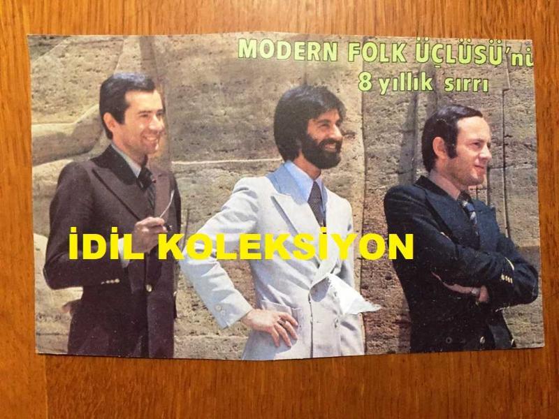 MODERN FOLK ÜÇLÜSÜ'NÜN DERGİDEN KESİLME FOTOĞRAFI - 16 x 10 cm EBADINDA - AHMET KURTARAN, DOĞAN CANKU, SELAMİ KARAİBRAHİMGİL TAKIM ELBİSELERİYLE YAN YANA POZ VERİRKEN ÇEKİLMİŞ BİR KARE, en son 1 yıl önce güncellenmiştir.