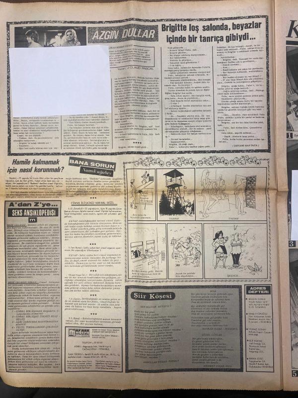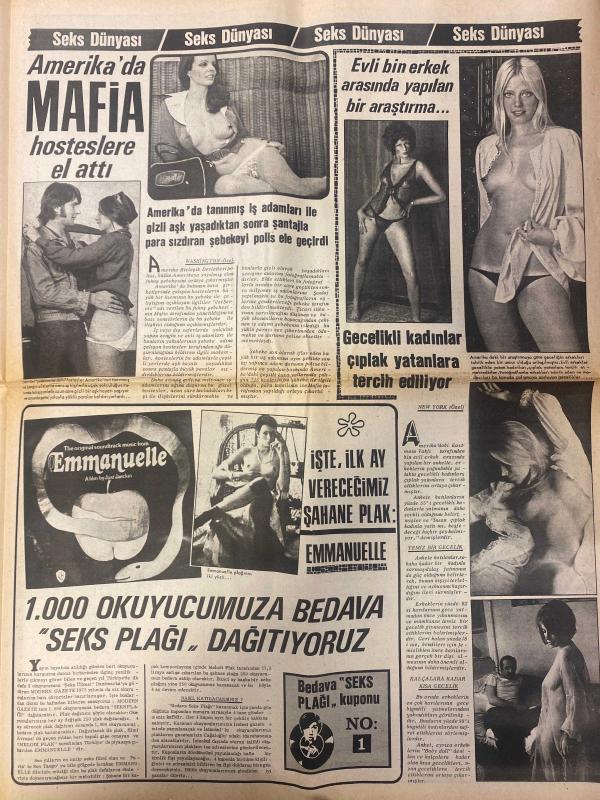 MODERN GAZETESİ DOĞUM GÜNÜ HEDİYESİ - 18 - 24 MART 1975 - TAM TAKIM 8 SAYFADIR -Türkan Şoray-Emel Özden-Santöz Aylin-Füsun Önal-Marilyn-Erna Remberg-Helga-Seiko-Haydar Dümen-Elif Pektaş-Samuray-Azmi Nihad-Nurbanu Sultan-Mahper-Nurhan Sultan-Celal Yılmaz-Sadettin Sungur-Halil Sungur-Sabahat Sarioğlu-Hüseyin Kalaat-Ahmet Ulu-Mesut Kurt-Naci Güleç-Ali Canan-Durmuş Doğdu-Hüseyin Kalaat-Mim Mimi-Semih Yankı-Erkan Özerman-Yasemin Kumral …ve Allah Türkan Şoray’ı yarattı-Emel Özden evli bir rejisörün hayatını yıktı-Santöz Aylin Japonya’da tedavi oluyor-minik kuş Füsun Önal-Dansöz Samuray Amerika yolcusu-Amerika’da mafia hosteslere el attı-Evli bin erkek arasında yapılan bir araştırma-Gecelikli kadınlar çıplak yatanları tercih ediyor-İşte ilk ay vereceğimiz şahane plak Emmanuelle-1.000 okuyucumuza bedava seks plağı dağıtıyoruz-Kim nerede nasıl eğleniyor-Zaman durmaz-Seks melegi Marilyn hayatı ve aşkları-Pop müzik-Erkan Özerman’ın ağına düşen Semiha Yankı yine yanlış yolda-Yasemin Kumral G.Sara, FERHAN DEVEKUŞUOĞLU tarafından kaleme alınmıştır. MODERN GAZETESİ DOĞUM GÜNÜ HEDİYESİ - 18 - 24 MART 1975 - TAM TAKIM 8 SAYFADIR -Türkan Şoray-Emel Özden-Santöz Aylin-Füsun Önal-Marilyn-Erna Remberg-Helga-Seiko-Haydar Dümen-Elif Pektaş-Samuray-Azmi Nihad-Nurbanu Sultan-Mahper-Nurhan Sultan-Celal Yılmaz-Sadettin Sungur-Halil Sungur-Sabahat Sarioğlu-Hüseyin Kalaat-Ahmet Ulu-Mesut Kurt-Naci Güleç-Ali Canan-Durmuş Doğdu-Hüseyin Kalaat-Mim Mimi-Semih Yankı-Erkan Özerman-Yasemin Kumral …ve Allah Türkan Şoray’ı yarattı-Emel Özden evli bir rejisörün hayatını yıktı-Santöz Aylin Japonya’da tedavi oluyor-minik kuş Füsun Önal-Dansöz Samuray Amerika yolcusu-Amerika’da mafia hosteslere el attı-Evli bin erkek arasında yapılan bir araştırma-Gecelikli kadınlar çıplak yatanları tercih ediyor-İşte ilk ay vereceğimiz şahane plak Emmanuelle-1.000 okuyucumuza bedava seks plağı dağıtıyoruz-Kim nerede nasıl eğleniyor-Zaman durmaz-Seks melegi Marilyn hayatı ve aşkları-Pop müzik-Erkan Özerman’ın ağına düşen Semiha Yankı yine yanlış yolda-Yasemin Kumral G.Sara adlı eser Türkçe dilindedir.