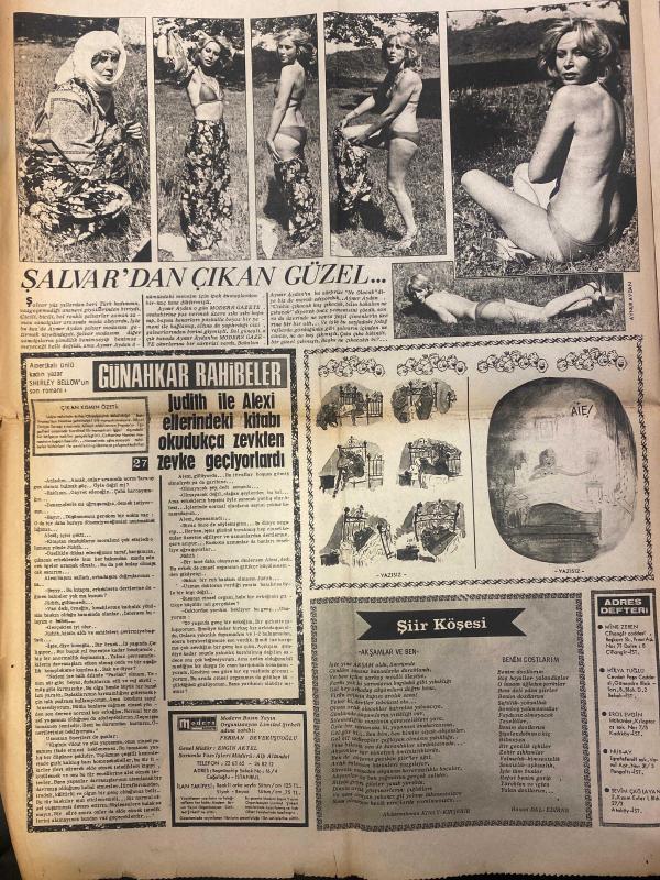 MODERN GAZETESİ DOĞUM GÜNÜ HEDİYESİ - 23 - 29 MAYIS 1978 - TAM TAKIM 8 SAYFADIR -NÜKHET DURU FOTOĞRAFLARI - NÜKHET DURUNUN ÜSTSÜZ ÇIPLAK ŞAHANE 5 FOTOĞRAFI - Zeki Müren-Mehlika Kentar-Nazan Berk-Hülya Süer-Nurhan Damcıoğlu-Nalan Çöl-A. Rıza Binboğa-Neco-Nil Burak-Murat Fırat-Türkan Şoray-Ahu Tuba-Süheyla Taner-Nükhet Duru-Ayşe Aydemir-Shirley Below-Ferhan Devletşahioğlu-Enis Kunt-Bülent Oran-Fifi-Yakup Bey-Hayşan Yüksel-Hülya Saygın Modern Gazete’nin son şaheseri-Modern Gazete Güzeller Albümü-Sanat eseri-Nalan Çöl yine kayıplara karıştı-Kim nerede nasıl eğleniyor-Flaş flaş flaş-Yarası olan gocunur-Zararın neresinden dönülürse kârdır-Ti-şört ti-şört ti-şört-Ölümsüz ses yine sahnede-Boğaziçi bir başka güzelleşti bu bahar Zeki Müren ile-Plakların yarışı-Sevdiğiniz şarkılar-En güzel erotik aşk mektupları-Türkan Şoray’a-Ahu Tuba’ya-Süheyla Taner’e-Catherine-Şalvardan çıkan güzel-Günahkâr rahibeler-Şiir köşesi-Akşamlar ve ben-Benim dostlarım adlı eser, Kitap > Süreli Yayınlar > Gazeteler > Türkiye > Genel > Günlük kategorisinde İkinci El olarak satıştadır.