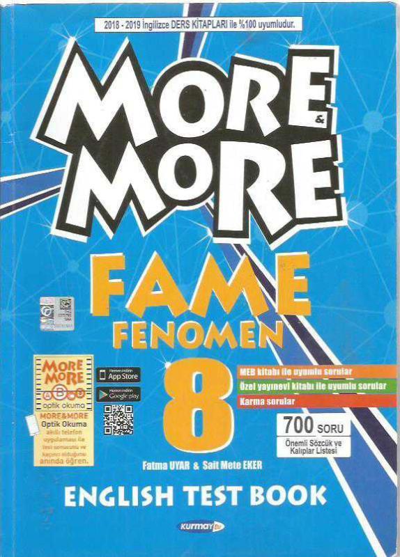 MORE & MORE FAME FENOMEN 8 ENGLİSH TEST BOOK, FATMA UYAR - SAİT METE EKER tarafından kaleme alınmıştır. Kitap 2018 yılında KURMAY ELT tarafından [ANKARA] yayınlanmıştır. 192 sayfadır. MORE & MORE FAME FENOMEN 8 ENGLİSH TEST BOOK adlı eser Türkçe dilindedir.