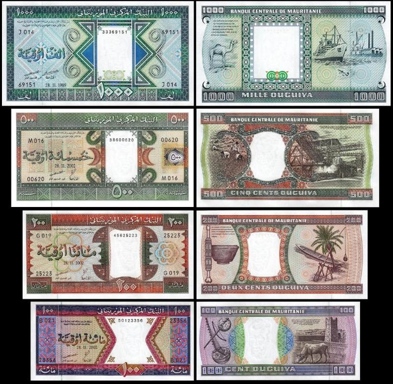 MORİTANYA 100-200-500-1000 OUGUIYA 1989-2002, 4 Lü Set Çil, Eski Yabancı Kağıt Para, 5 saat önce satışa sunulmuştur.