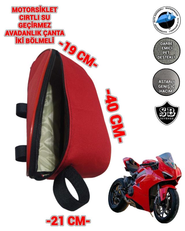 MOTORSİKLET YAN AVADANLIK ÇANTALARI SU GEÇİRMEZ İTHAL KUMAŞTAN İMAL EDİLMİŞTİR, İÇ KISIM SU GECİRMEZ ASTAR İLE KAPLI, ASTAR VE GÖVDE ARASI DARBE EMİCİ PET TAKVİYELİ, İKİ BÖLMELİ, SABİTLEMEK İÇİN 3 ADET CIRT APARAT, FERMUARLI AÇ KAPA , DÜZ DURUŞ İÇİN KENARLAR SERT PLASTİK FİTİLLİ. GENİŞLİK 40CM YÜKSEKLİK 21CM KÖRÜK YAN 19CM ÖLÇÜLERİNDE İMAL EDİLMİŞTİR İSTENİLEN ÖLÇÜDE İMALAT YAPILIR