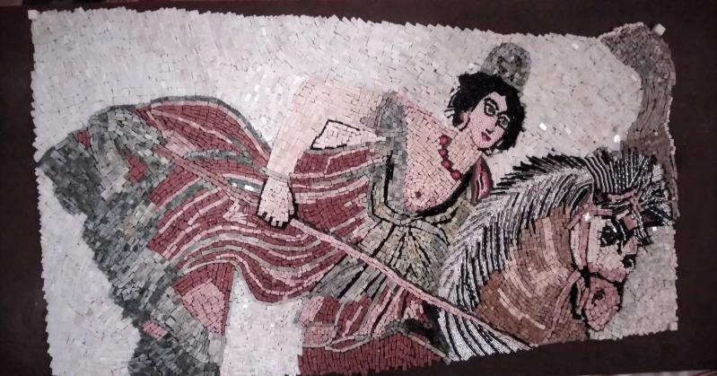 MOZAİK TABLO AMAZON KRALİÇESİ başlıklı antika/koleksiyon objesi Türkiye menşe’lidir. 2000 ve sonrası dönemine aittir.