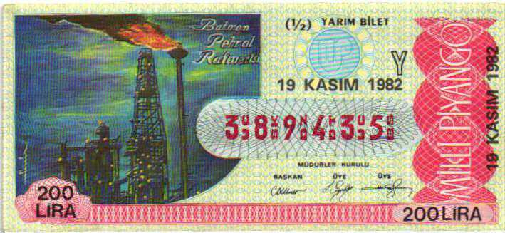 MP.1204 MİLLİ PİYANGO 19 KASIM 1982 BATMAN PETROL RAFİNERİSİ Y YARIM BİLET, 7 yıl önce satışa sunulmuştur.
