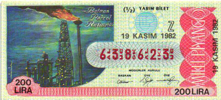 MP.1205 MİLLİ PİYANGO 19 KASIM 1982 BATMAN PETROL RAFİNERİSİ Z YARIM BİLET, 7 yıl önce satışa sunulmuştur.