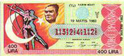 MP.1221 MİLLİ PİYANGO 19 MAYIS 1983 GENÇLİK VE SPOR BAYRAMI ATATÜRK BAYRAK Y YARIM BİLET
