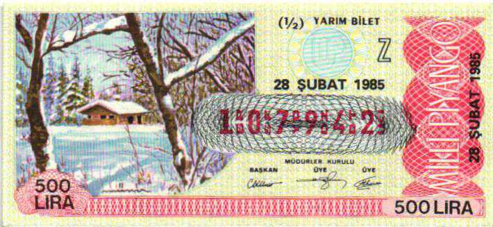MP.1361 MİLLİ PİYANGO 28 ŞUBAT 1985 KIŞ MANZARASI KARLI DALLAR EV Z YARIM BİLET, 7 yıl önce satışa sunulmuştur.