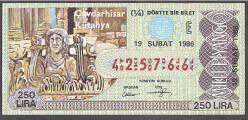 MP.170 MİLLİ PİYANGO 19 ŞUBAT 1986 ÇAVDARHİSAR KÜTAHYA AİZONOİ E DÖRTTE BİR BİLET