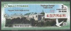 MP.2500 MİLLİ PİYANGO 29 OCAK 2009 TOPKAPI SARAYI G DÖRTTE BİR BİLET, en son 8 ay önce güncellenmiştir.