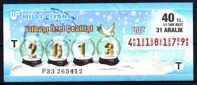 MP.2842 MİLLİ PİYANGO 31 ARALIK 2012 YILBAŞI ÖZEL ÇEKİLİŞİ T TAM BİLET, 6 ay önce satışa sunulmuştur.