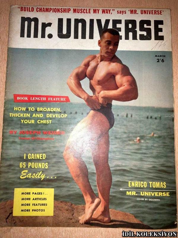 Kitap 1957 yılında MR. UNİVERSE tarafından [U.S.A] yayınlanmıştır. 54 sayfadır. MR. UNİVERSE : THE MAGAZİNE OF THE CHAMPİONS / MARCH 1957 / ENRİCO TOMAS / RAY SCHAEFER / CHARLES A. SMİTH / JOE WEİDER / ABE GOLDBERG / DR. FREDERİCK TİLNEY / GEORGE EİFERMAN / BİLL McCORMİCK / BARTON HORVATH / WEİDER PUPİLS) adlı eser İngilizce dilindedir.