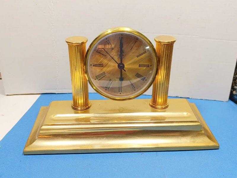 MS13-----ELCASCO MARKA ALTIN KASA PİLİ BİTİK YADA ÇALIŞMIYOR MASA SAATİ başlıklı antika/koleksiyon objesinin menşei belirtilmemiştir. Objenin ait olduğu dönem bilinmeketedir.