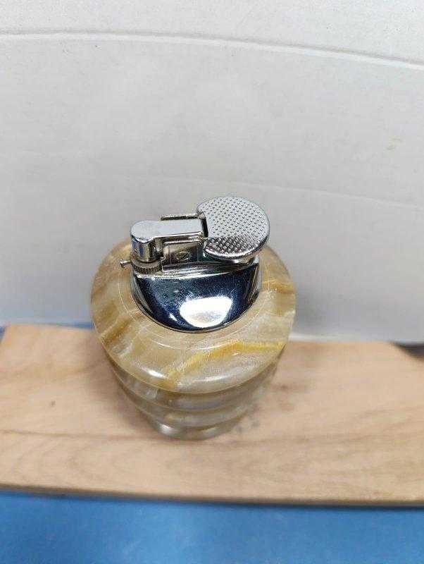 MSÇ7---MERMER KAİDELİ ESKİ GAZLI MASA ÇAKMAĞI -ÇALIŞIYOR başlıklı antika/koleksiyon objesinin menşei belirtilmemiştir. Objenin ait olduğu dönem bilinmeketedir.
