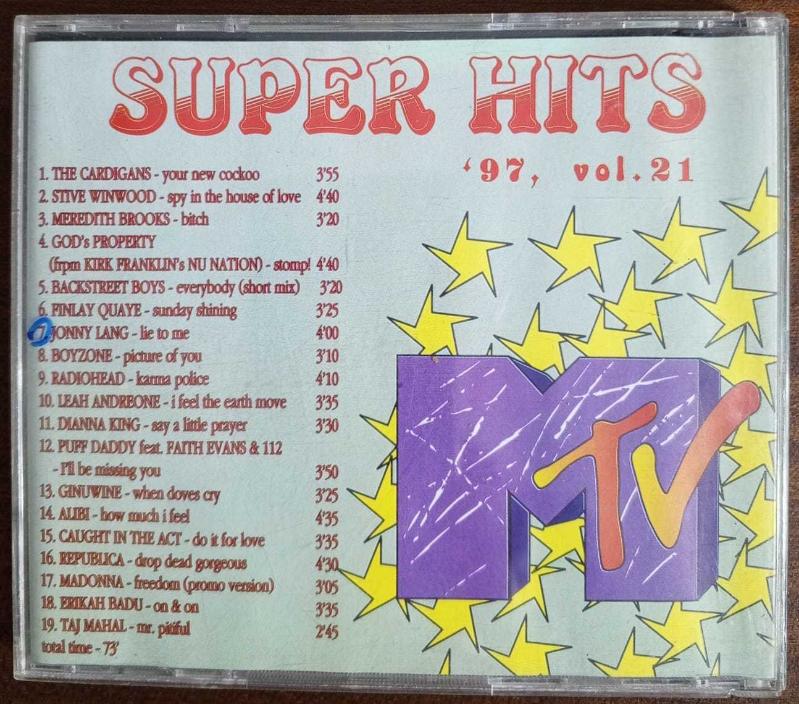 MTV SÜPER HİTS 97 VOL.21 KARIŞIK MÜZİK CD İKİNCİ ELDİR KAPAK KONDİSYON:9 CD KONDİSYON:9 NOT:CD İKİNCİ ELDİR. ARİVDEN ÇIKMADIR.