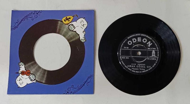 TÜRK HALK MÜZİĞİ 19** BASKI ODEON PLAK PLAK BİRAZ ÇITIRTILI ÇALIYOR (10/7,5) ATLAMA TAKILMA YOKTUR 45LİK KORUMA KABINDA FOTOĞRAFTAKİ ÜRÜN