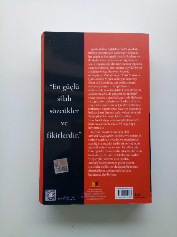 “En güçlü silah sözcükler ve fikirlerdir.” Spartaküs’ten Bağdat’ta Bush’a ayakkabı fırlatan protestocuya kadar tarih boyunca her çağda ve her kıtada insanlar krallara ve iktidarlara karşı mücadele etmiş, isyanın sesini duyurmuşlardır. Kimi zaman toplumu cesaretlendirmiş, kimi zaman da yıllar sonra alevlenecek isyanlara esin kaynağı olmuşlardır. Muhalif sesler Antik Yunan’dan Çin’e, oradan Mısır’a kadar yankılanmış, İslam ve Musevilikte şair ve filozofların sesine ses katmıştır. Arap kölelerin isyanlarında ve ortaçağdaki Osmanlı karşıtı ayaklanmalarda da yükselen bu muhalif sesler modern çağın başlangıcında Hollanda ve İngiliz devrimlerinde yükselmiş, Fransız, Haiti, Amerikan, Rus ve Çin devrimlerinde katlanarak büyümüştür. Savaş ve ekonomik baskıya karşı direnen sesler yakın dönemde Beijing’den Kahire’ye, Moskova’dan New York City’ye savaş meydanlarında ve kamusal alanlarda adalet ve özgürlüğü haykırmıştır. Küresel ölçekli bir antoloji olan Muhalif Sesler Kitabı, söylevler ve broşürler, şiirler ve şarkılar, oyunlar ve manifestolar aracılığıyla insanlık tarihinin her çağından muhalif seslere yer veriyor. Her dönemin kendi put-kırıcıları vardır fakat bunların en büyükleri direnişlerini seleflerinin sözleri ve eylemleri üzerine inşa ederler. MUHALİF SESLER KİTABI en güçlü silahın sözcükler ve fikirler olduğunu bilen tüm direnişçilerin cephanesine katkıda bulunacak dev bir eser.