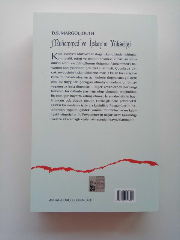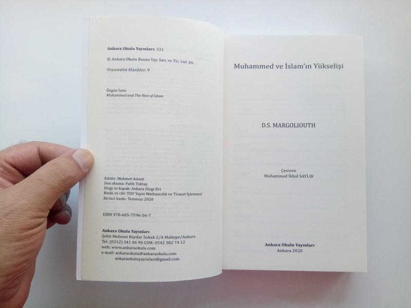 MUHAMMED VE İSLAM'IN YÜKSELİŞİ (2. EL), D. S. MARGOLIOUTH tarafından kaleme alınmıştır. Eser MEHMET AZİMLİ editörlüğünde hazırlanmıştır. Kitap 2020 yılında ANKARA OKULU YAYINLARI tarafından [ANKARA] 978-605-7596-56-7 ISBN kodu ile yayınlanmıştır. Satışta olan kitap, yayınevinin 1. baskısıdır. Bu baskının çevirisi MUHAMMED İKBAL SAYLIK tarafından yapılmıştır. 432 sayfadır. Sayfa bilgisi 2. HAMUR olarak belirtilmiştir. MUHAMMED VE İSLAM'IN YÜKSELİŞİ (2. EL) adlı eser Türkçe dilindedir.