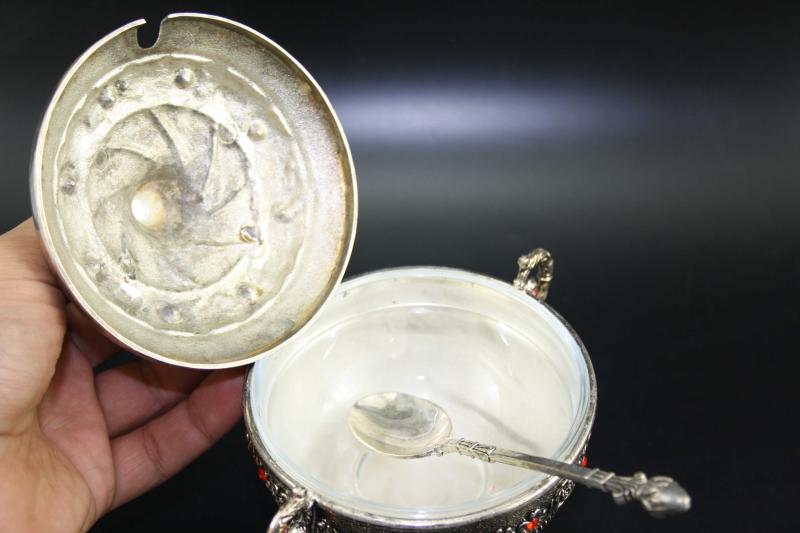 ORJINAL BAKIR URUNDUR FULL İŞLEMELİ BİR ÜRÜNDÜR FULL İŞLEMELİ GÜMÜŞ KAPLAMA BAKIR ŞEKERLİK BÖYLESİ YOK 13CM 9.5CM 13CM