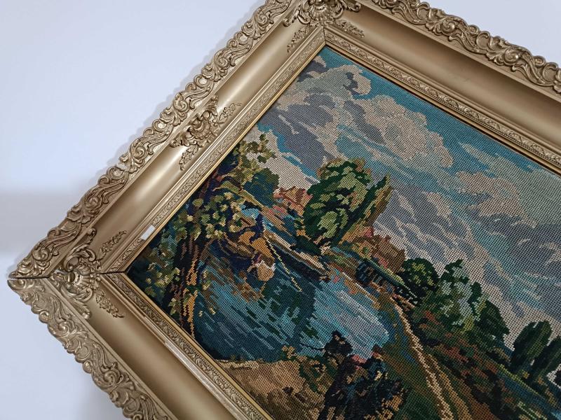 TAMAMİYLE ELDE ISLEME URUNDUR BU TARZ URUNLER İŞLEME URUNLER 1 YIL BULABİLMEKTEDİR BÖYLESI NEREDEYSE YOK YENI ISLEME URUNLER ILE KARISTIRMAYINIZ ÇERÇEVENIN BAZI YERLERINDE ACILMA VAR REVIZE EDIBILIR BÖYLEDE SORUNSUZ SUAN EVIMIZIN SALONUNU SÜSLEYEN ANTIKA NADIR PARÇALARDANDIR ÇERÇEVESI BILE GEREGINDEN FAZLA ESKIDIR ÇERÇEVESI COK DAHA ESKIYDI BIZ BOYAMA ISLEMI YAPTIK BENZER VE DAHA COK KUCUK URUNLER COK DAHA FAZLA UCRETLERE SATILMAKTADIR BÖYLE EL ISI USTA ISI EMEK ISI URUN ANLATILMAZ YAŞANIR DENILEN URUNLERDENDIR 130X71 CM