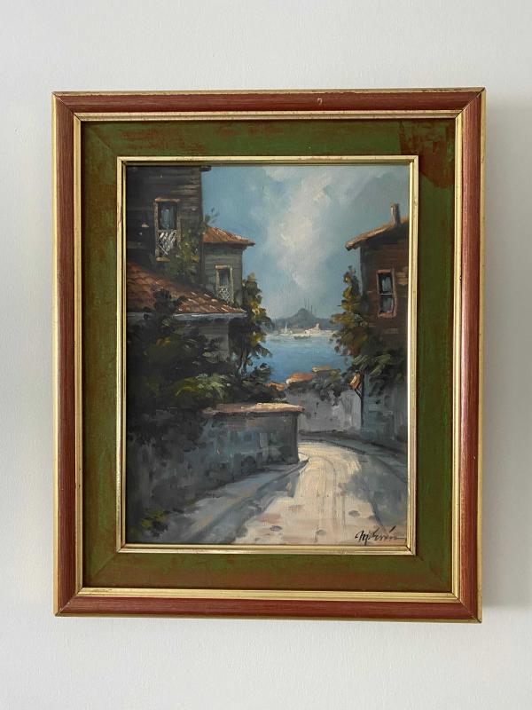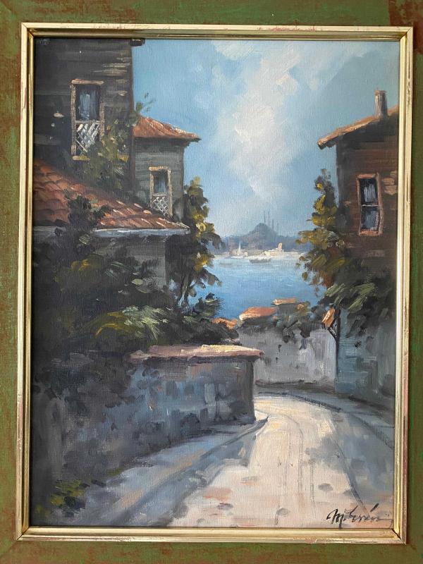 MURAT ERSİN TABLO TUVALE YAĞLI BOYA SÜLEYMANİYE BOĞAZİÇİ başlıklı antika/koleksiyon objesi Türkiye menşe’lidir. 1950-1999 arası dönemine aittir.