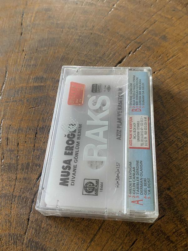 MUSA EROĞLU - DİVANE GÖNLÜM BENİM - KASET 1990 - AZİZ PLAK A1 MEDET SEVDİĞİM A2 SELİN CANLAR A3 TABİBLER DERDİNE DERMAN OLANSIN A4 GEL BERİ A5 YA DOST B1 DİBANE GÖNÜLÜM B2 ALA GÖZLÜ NAZLI PİRİM B3 BİR DERGAH GÖRDÜM B4 GİRDİM BİR MEKANA B5 SUNAM DA GELDİ