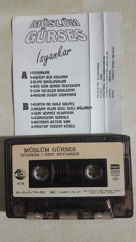 MÜSLÜM GÜRSES DERTLER MEYHANESİ İSYANKAR KAĞIT BASKI başlıklı ürün, Efemera, Müzik, Sinema > Müzik, Plak, Kaset, CD > Müzik Kaseti > Yerli Müzik Kaseti kategorisi altında İkinci El olarak satılmaktadır.