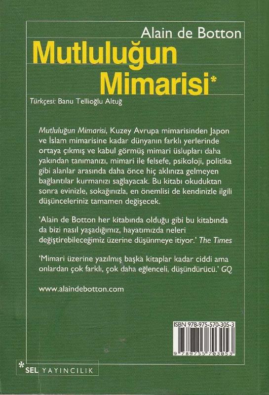 MUTLULUĞUN MİMARİSİ adlı eser, Kitap > Sanat > Mimari kategorisinde İkinci El olarak satıştadır.